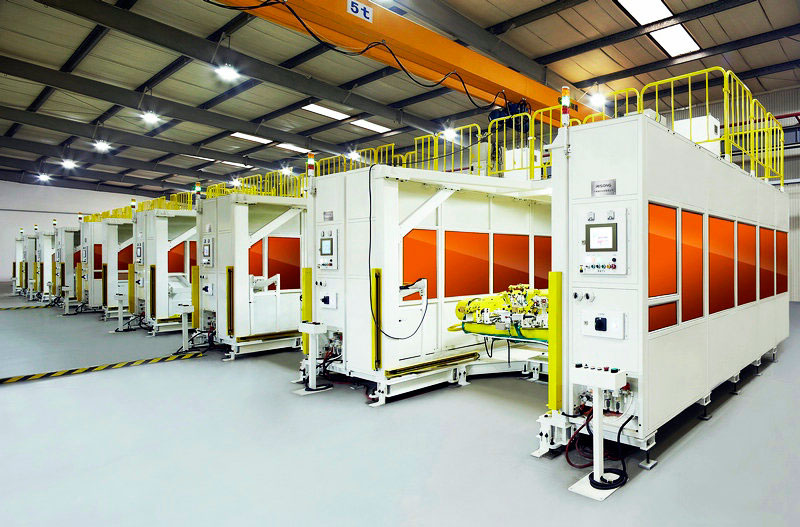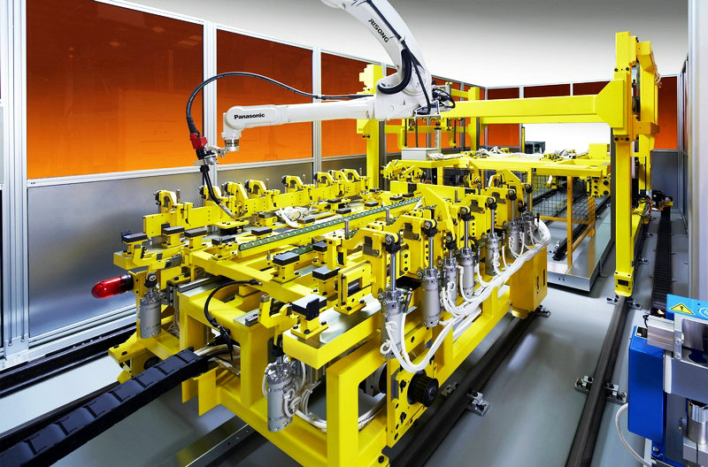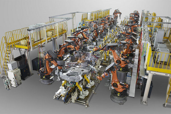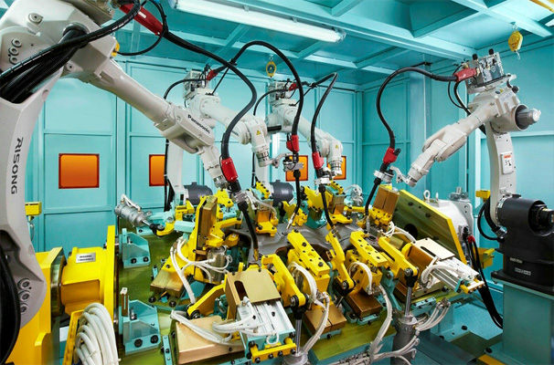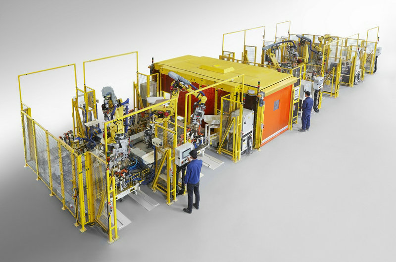 · 包含機器人27台,其中焊接機器人24台,搬運機器人3台,可實現人機混合裝件,自動焊接與輸出功能,年産能達20萬台(即63JPH)