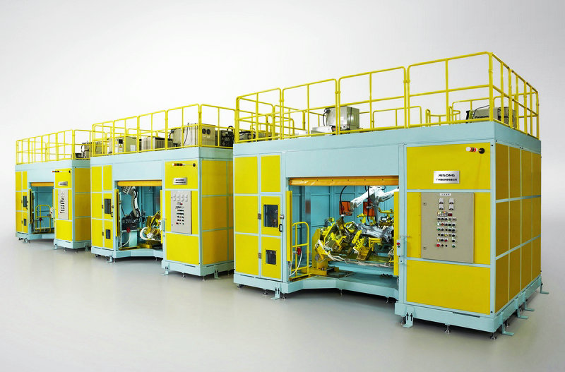 · 油箱機器人焊接生産線采用先進的松下TAWERS電源融合型機器人,實現薄闆長焊縫焊接,以及FANUC機器人打磨工作站、自動火焰釺焊工作站、試漏機、清洗機、塗油機、電阻縫焊工作站等