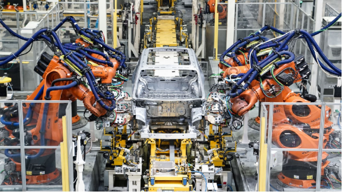 · 包含機器人27台,其中焊接機器人24台,搬運機器人3台,可實現人機混合裝件,自動焊接與輸出功能,年産能達20萬台(即63JPH)