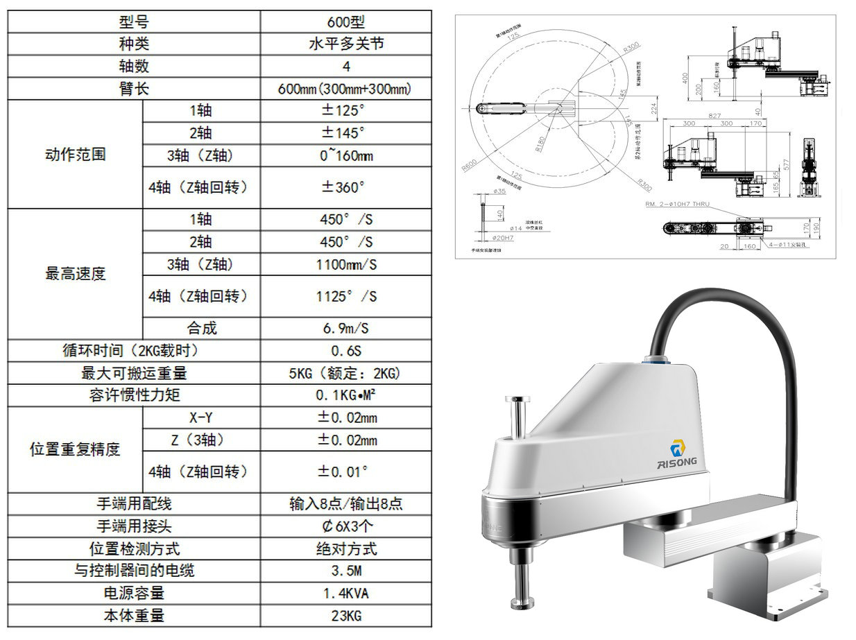 SACRA robot in RSL series is a range product serious from Risong Technology. With excellent application concept of highly integrated technology, RSL series has become a successor of excellent SCARA robots.
