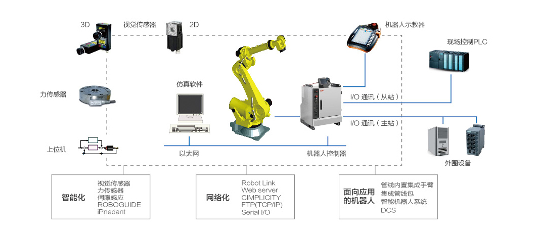 In the network era, the interconnection of things has become an inevitable trend. Risong Technology extensively integrates robot, PLC (programmable logical control), HMI (human-computer interface), CNC (computer numerical control) and other function units or control modes to achieve integrated and networked control. It also seamlessly connects robots to MES system in the plant or ERP system in the enterprise to achieve the high integration of industry and information technology, providing customers with digital workshop and smart factory solutions.