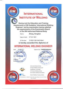 The International Institute of Welding (IIW) established the internationally unified welding personnel training and qualification certification system worldwide in 1998. So far, the worldwide training, examination, and certification for six kinds of welding personnel such as International Welding Engineer (IWE), International Welding Technologist (IWT), International Welding Specialist (IWS), International Welding Practitioner (IWP), International Welding Inspector Personnel (IWIP) and International Welder (IW) have been unified. Among them, IWE is the highest level welding technology and quality supervision personnel in the standard of ISO14731 (equivalent to the European standard EN719) and is one of the elements for welding-related enterprises to obtain international product quality certification. An IWE can be responsible for welding technical work in various fields such as physical design, production management, quality guarantee, R&D and plays an important role in an enterprise.