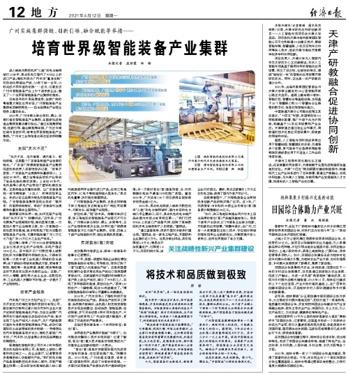 经济日报 | 广州实施集群强链、创新引领、融合赋能等举措 培育世界级智能装备产业集群