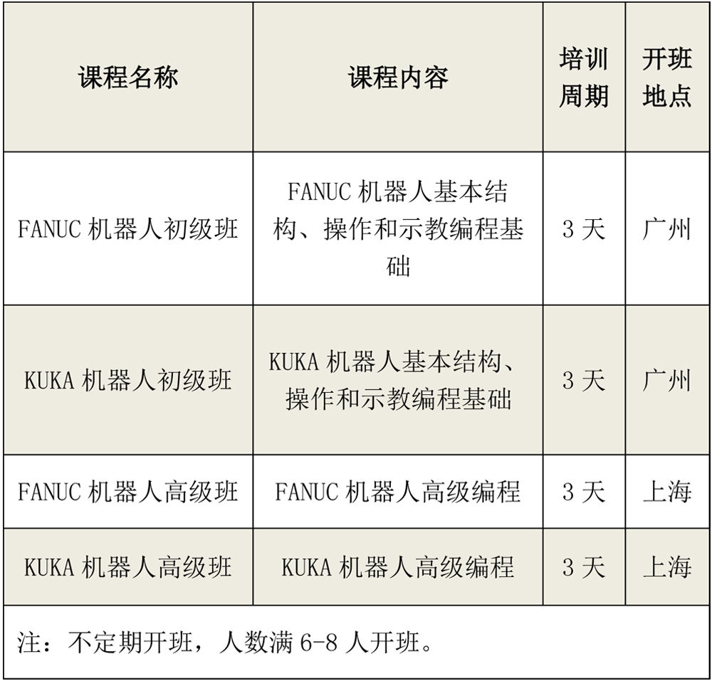 FANUC和KUKA机器人培训课程