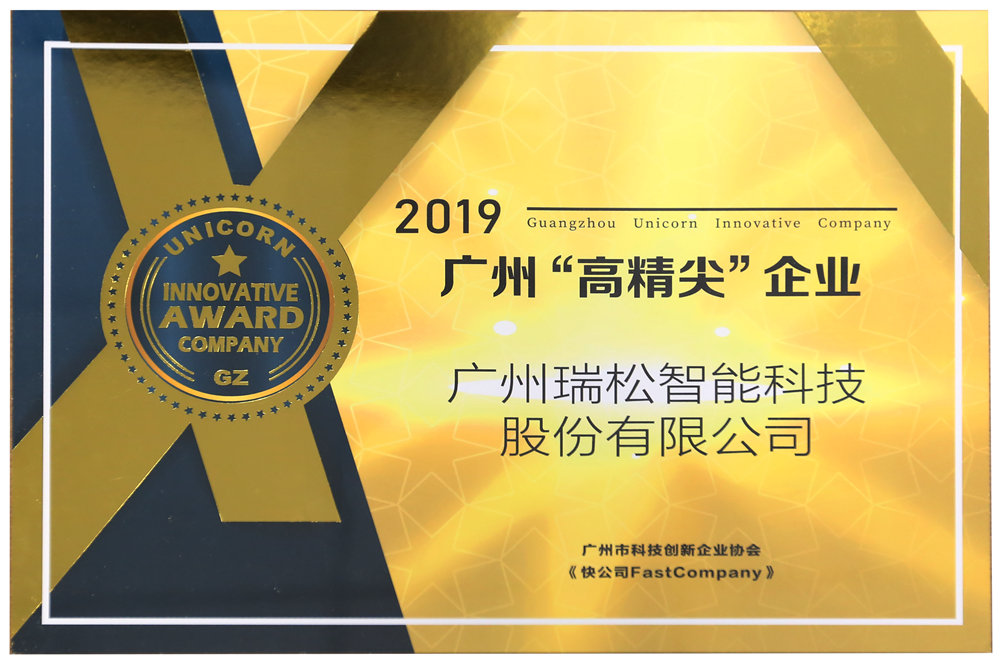 瑞松科技同时入选2019年广州未来“独角兽”创新企业和“高精尖”企业榜单。