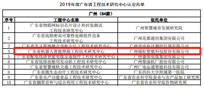 Guangdong Robotic Intelligent Welding Engineering Technology Research Center of Risong Technology was approved for construction.