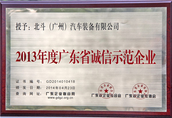 2014年4月23号,瑞松北斗荣获由广东省企业联合会和广东省企业家协会联合颁发的“2013年度广东省诚信示范企业”称号。获得此项殊荣,是瑞松北斗多年来诚信经营、优良服务的最佳证明,也是社会各界对瑞松科技在履行社会责任、诚信守法等工作的肯定和鼓励。
