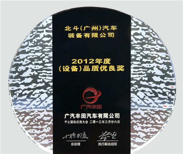 【2012年度】瑞松北斗获广汽丰田汽车有限公司 “(设备)品质优良奖”