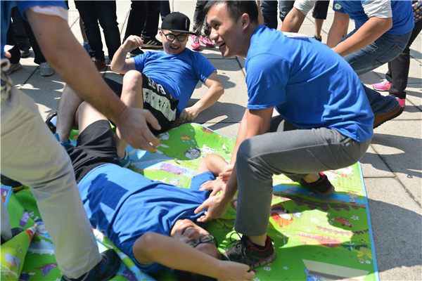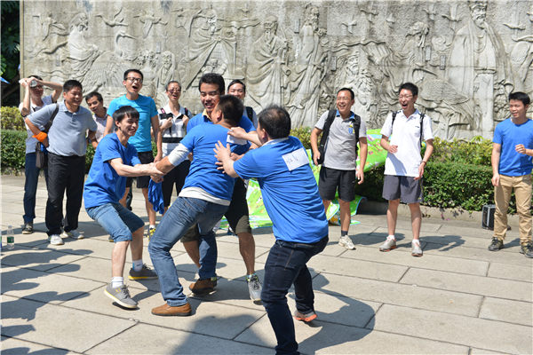 到达山顶了,正式进入公司为大家准备的撕名牌活动。这团队精神在撕名牌活动中真的体现得淋漓尽致啊,邓超也要自认不如了